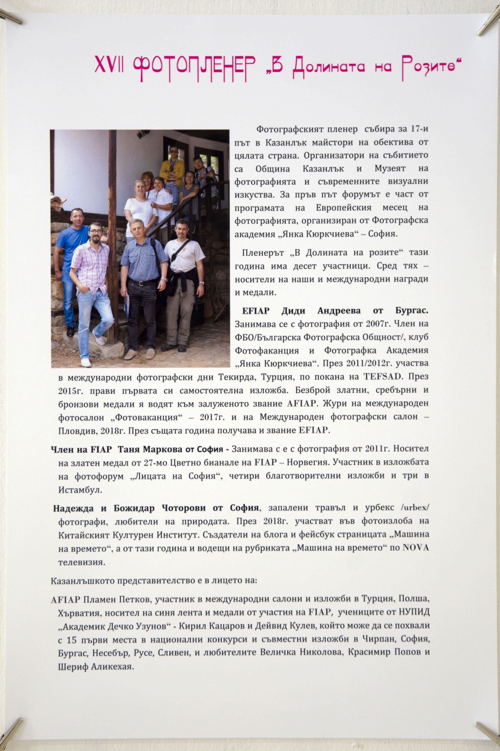По покана на Музея на фотографията и Община Казанлък, част от екипа на „Машина на времето“ (Надежда Чоторова и Божидар Чоторов) взе уастие в XVII фотопленер и изложба „В долината на розите“ 2019.